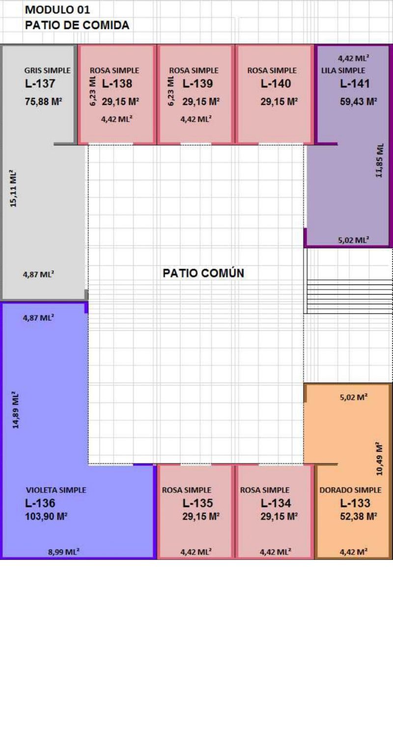 Locales ubicados en la parte externa del módulo, con vista a la calle o parqueos.