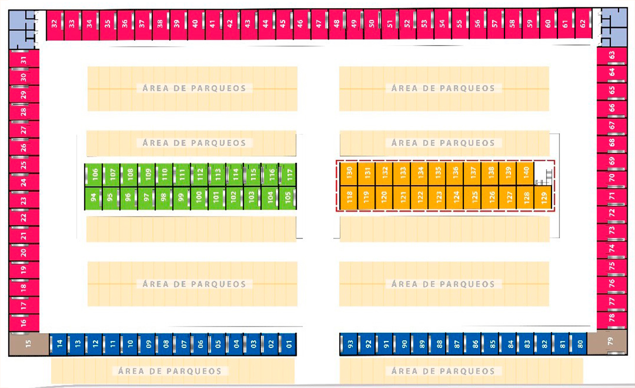 Locales ubicados en la parte externa del módulo, con vista a la calle o parqueos.